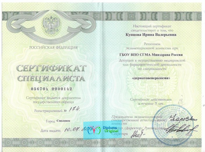 Наша компания приглашает приобрести качественные медицинские сертификаты, позволяющие владельцу без проблем устроиться на работу или выполнить требования по повышению квалификации. Мы предоставляем документы, выполненные на бланках Гознака. Это исключает вопросы по поводу подлинности. Преимущества сотрудничества с нами:
